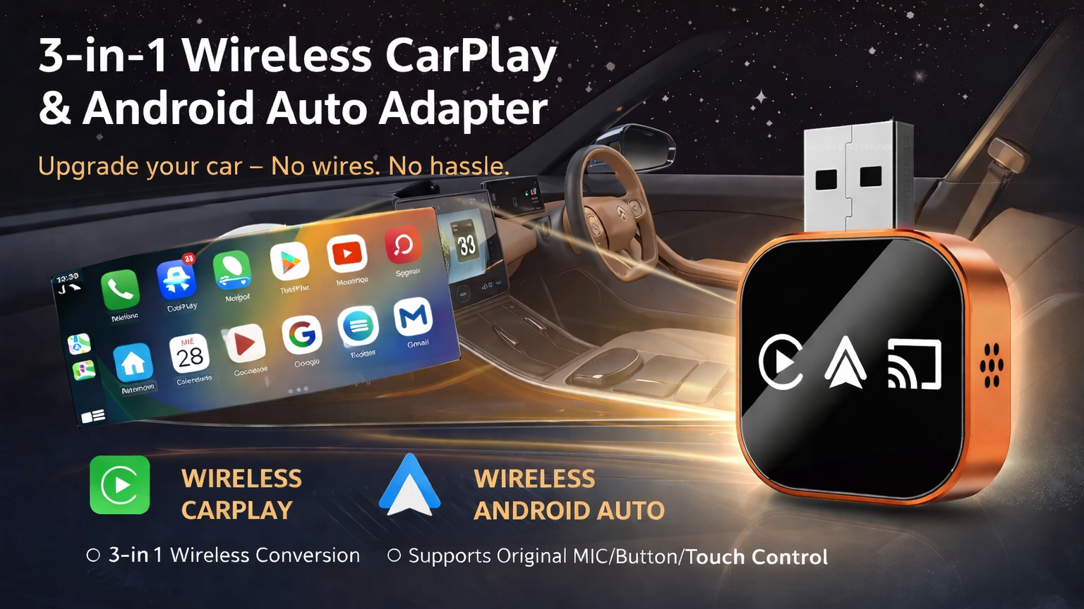 If your car supports a wired connection, this adapter will upgrade it to full wireless mode.